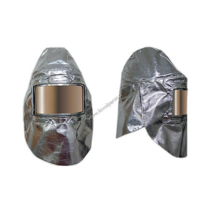 Osłona głowy i twarzy wykonana jest z tkaniny paraaramid/preox metalizowanej.